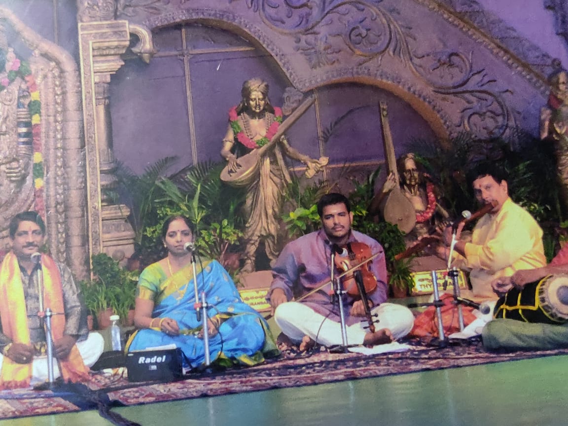 My journey into the world of Carnatic music started with my grandfather steering my boat of dreams onto the vast ocean of music, for which I'm very grateful... Since then, I have been learning this art form which is truly divine .. Under the sweet and insightful guidance of my guru, Smt .Krishaveni, (pedhamma) ... my love for music has just gotten better. And this is very true in my case because, the classes are just as homely and interactive as it can be and it is truly humbling at the same time. The classes is a one to one interactive session, which is something I look forward to every single time. It helps me elevate myself to a composed self. Music is a form of divinity , that creates a surreal world of its own, where the expressions and emotions are true of heart... and such encouragement is provided by pedhamma in each session. I'm truly humbled to be learning under a guru of such grace and ardor.